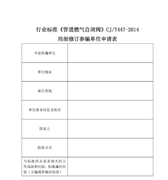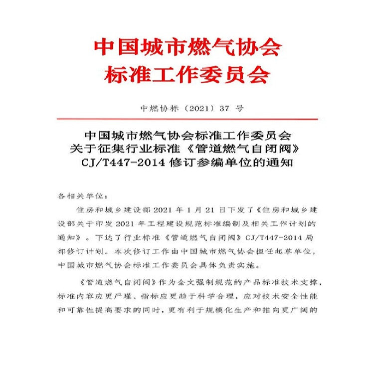 邀請函|《管道燃氣自閉閥》CJ/T 447-2014修訂邀請
